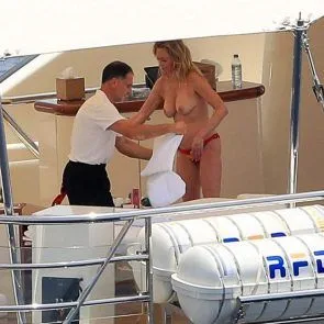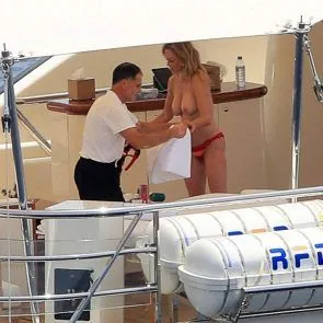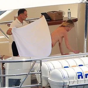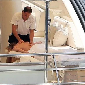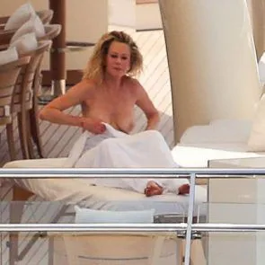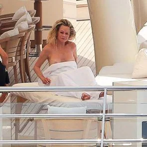 Ikoninen näyttelijä Melanie Griffith yläosattomissa paparazzi-kuvat ovat täällä! Voit nähdä hänet veneessä valmistautumassa hierontaan puhuessaan hierojansa kanssa. Melanie otti rintaliivit ja näytti vanhoja roikkuvia tissit hänelle ja koko maailmalle, koska paparatsomiehet olivat lähellä jahteja! Tämä nainen osaa nauttia ja käyttää tämän lyhyen elämän joka päivä! Hieno työtyttö, äänestämme onnellisesta lopusta!