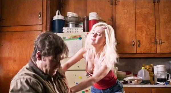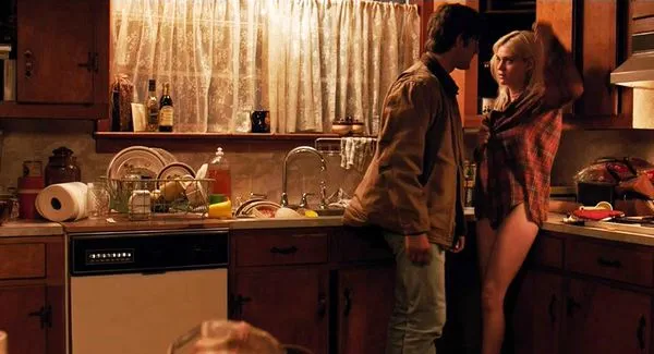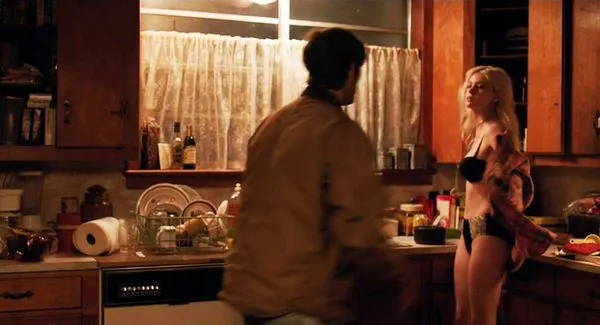 Sitten Nicola Peltz seisoo keittiössä vain miesten punaisella ruudullisella paidalla. Kaveri käskee häntä ottamaan se pois saaden hänet avaamaan sen paljastaen mustat rintaliivit ja pikkuhousut. Sitten hänen vihastuvan ja käskemän häntä peittämään itsensä takaisin.